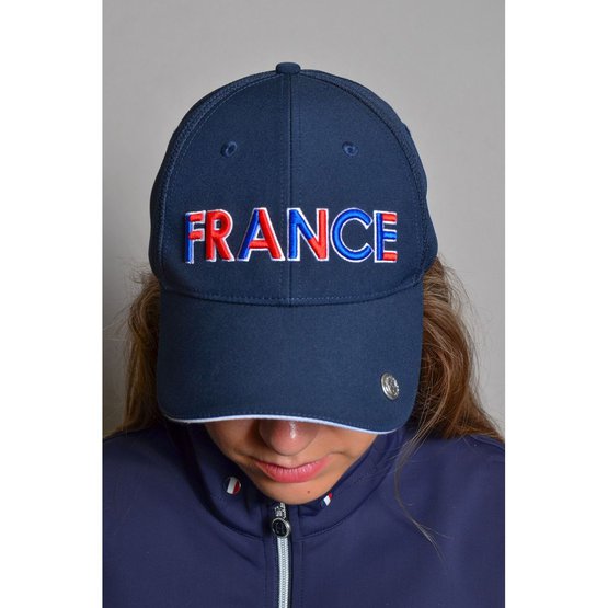 Casquette unisexe avec une visière bleu marine et un drapeau français imprimé. Boucle réglable à l’arrière. Logo officiel Harcour sur le devant et logo France sur le côté gauche.