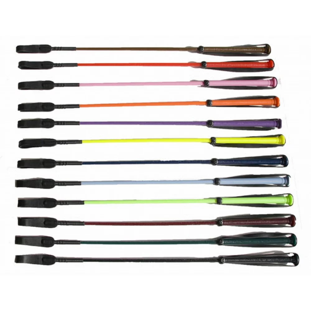 La poignée est assortie au corps de la cravache. Présence d’une dragonne et d’un cabochon pour éviter que la cravache n’échappe des mains du cavalier. La claquette est en imitation cuir.