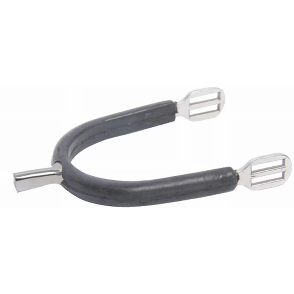Éperons en acier inoxydable et caoutchouc. La gaine de caoutchouc sur les éperons permet de protéger les bottes ou les boots des frottements.
