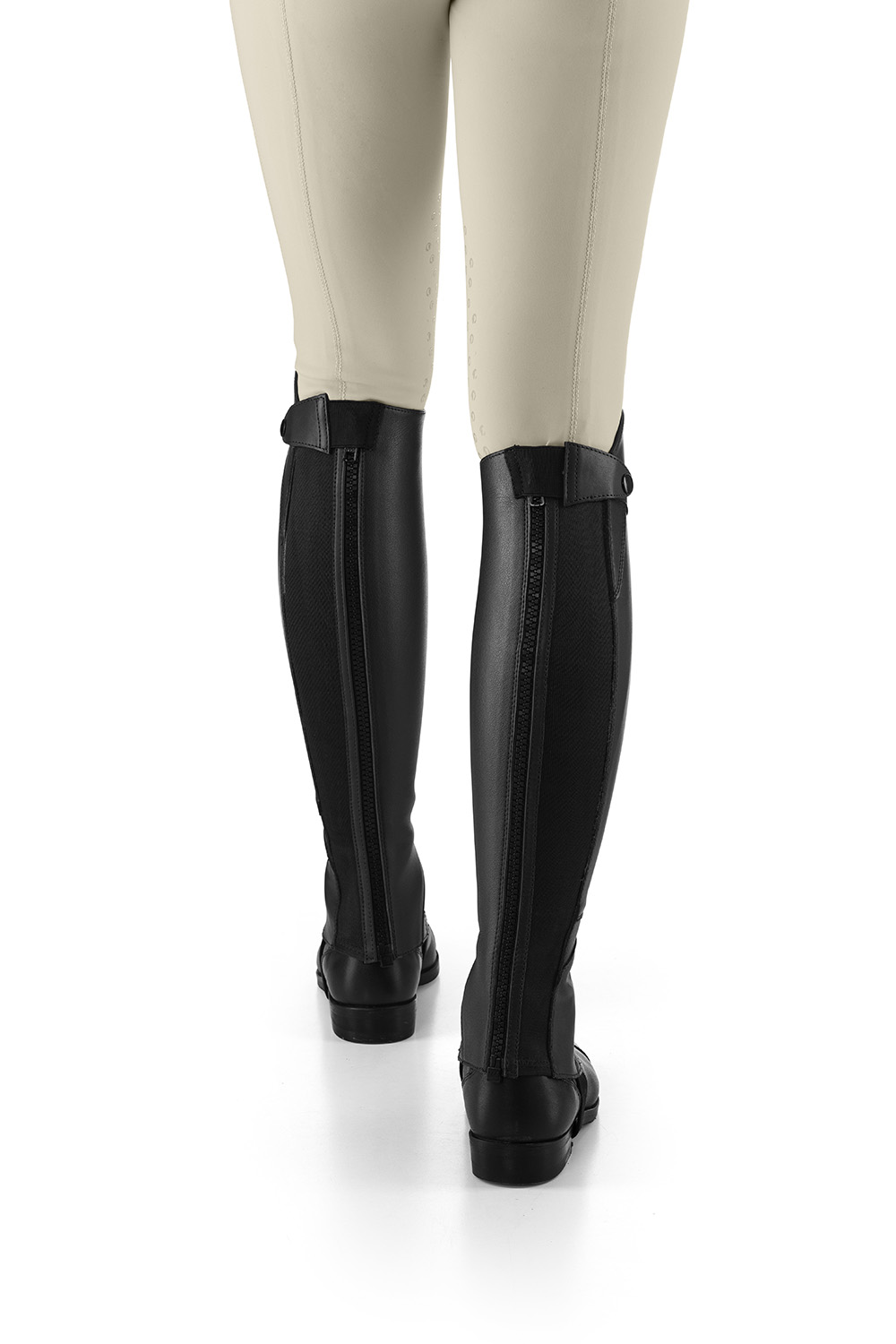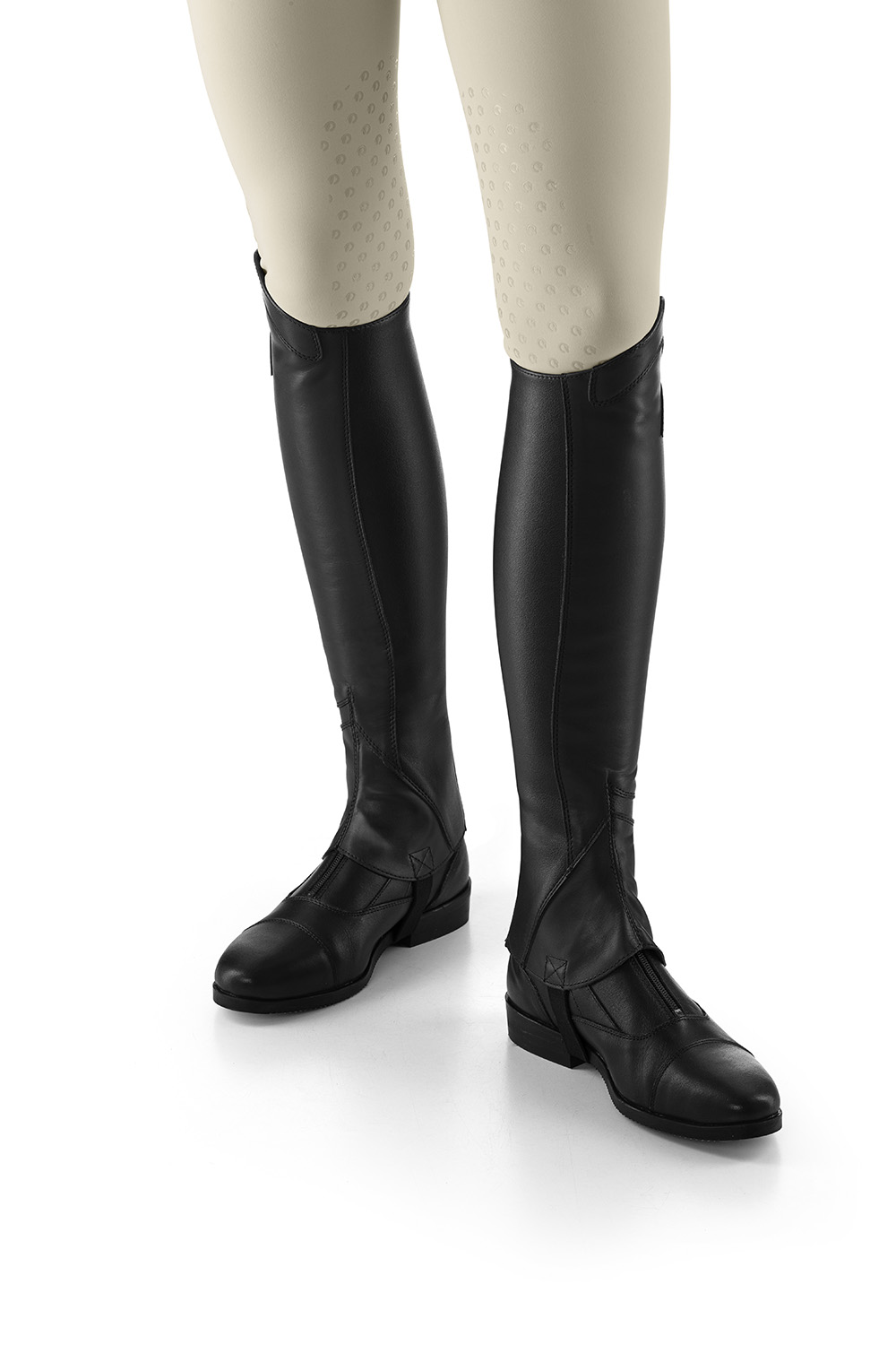 Les mini-chaps Lyra sont fabriquées en cuir pleine fleur combiné à un double élastique le long de la fermeture éclair arrière et du protège-pied inférieur pour garantir un contact flexible et idéal et encourager une position correcte des talons vers le bas. Les coutures sophistiquées à double point le long des lignes de tension ajoutent du glamour et augmentent la résistance à l’usure. L’élégant patchwork de cuir est conçu pour un ajustement parfait, augmentant ainsi son attrait séduisant.