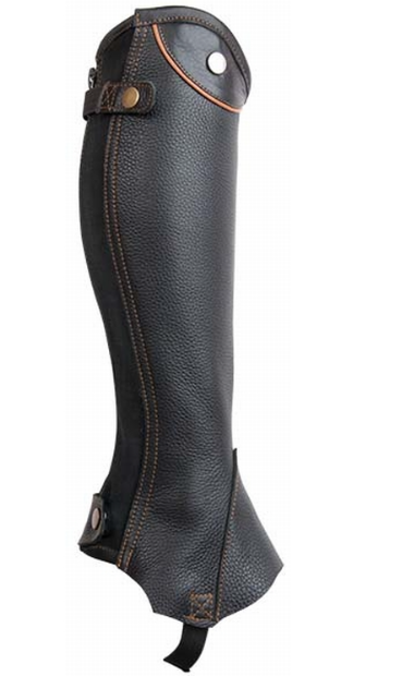 Mini-chaps galbées en cuir de vache épouse parfaitement votre jambe, comme une seconde peau. Cette mini-chaps a été réalisée en cuir grainé épais, résistant et souple. Sa découpe en bas de jambe permet d’enfiler les éperons aisément. Son chapeau de gendarme rehaussé améliore l’esthétisme de ce modèle Les Schubert combinent lélégance des bottes et le confort des mini-chaps. Excellent rapport qualité/prix. Fermeture latérale sécurisée par pression en haut et en bas de la tige. Pour un look très compet’, vous pouvez les assortir avec les boots Amati qui reprennent les mêmes détails esthétiques