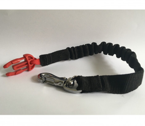 La sangle d’attache est dotée d’un mousqueton qui facilite ainsi l’accroche à la sangle de selle, elle-même fixée aux couteaux d’étrivières .