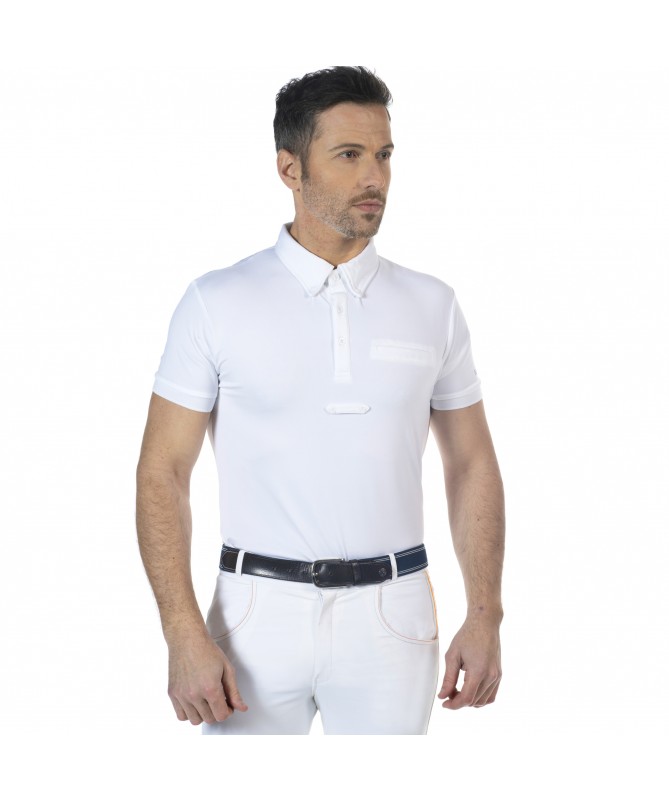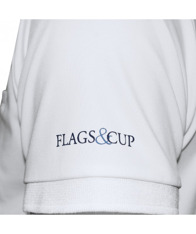 Polo de concours technique, léger, confortable et respirant, idéal pour la compétition. Flags&Cup imprimé sur la manche gauche. Impression sur le dos de l’épaule droite.