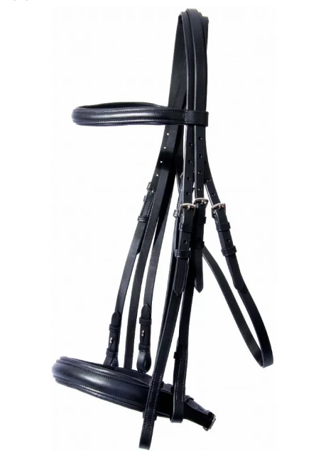 Cette bride de dressage est en cuir de buffle « supérieur ».