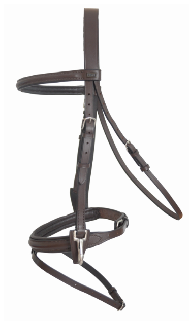 En cuir de buffle, le frontal et la muserolle sont doublés pour plus de confort.