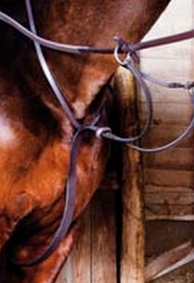 Martingale à anneaux en cuir sélectionné. Limite les mouvements de tête du cheval vers le haut.